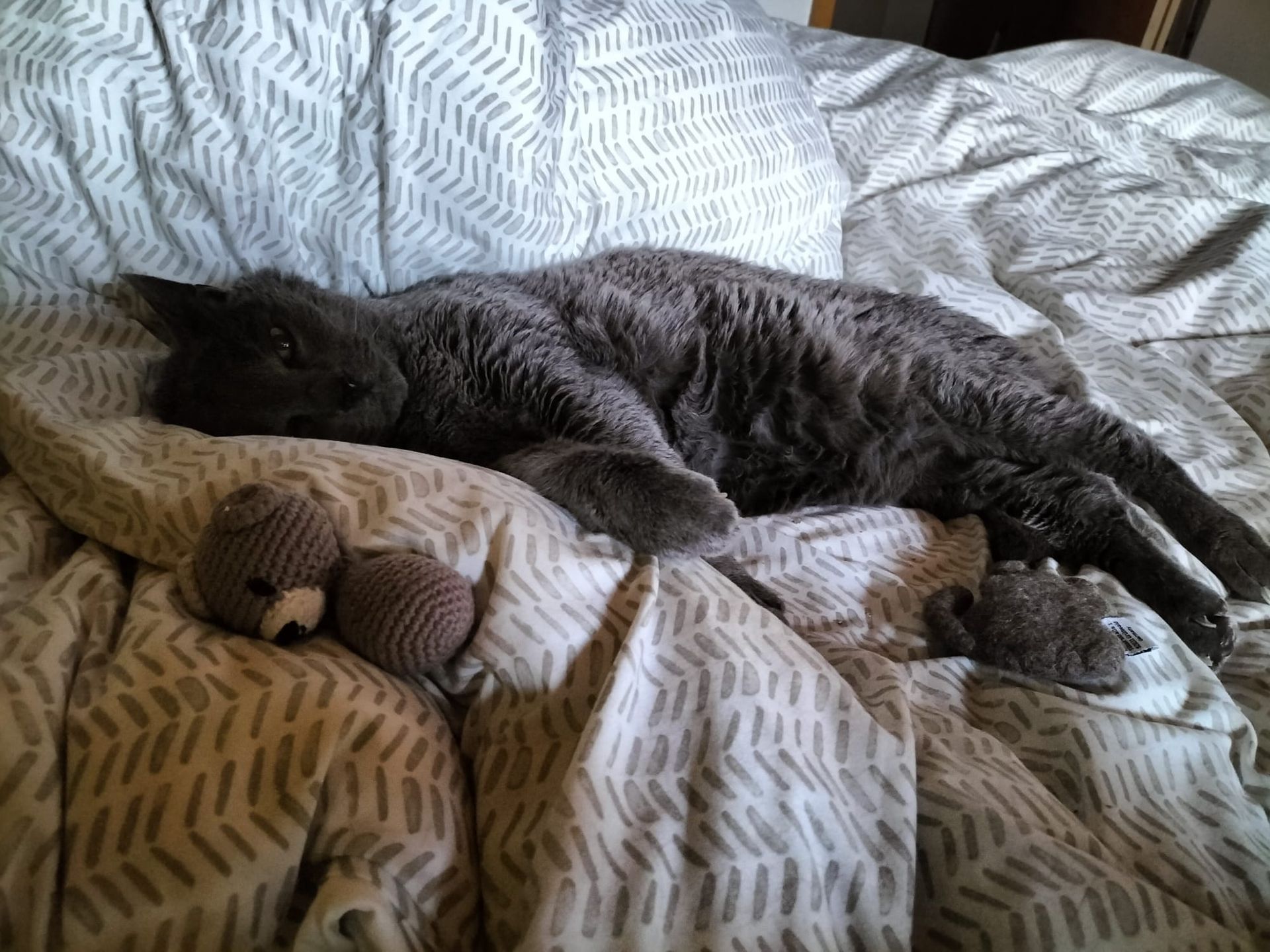 Hallo Frau Kordisch, Clancy heißt mittlerweile Floki und hat sich wunderbar bei uns eingelebt. Seine absolute Lieblingsbeschäftigung ist Schmusen – und dabei schnurrt er so laut, dass die Wände nur so beben! Wenn Floki ausnahmsweise mal keine Kuscheleinheit einfordert (was wirklich selten vorkommt), beobachtet er neugierig die tierischen Bewohner in den Bäumen oder das bunte Treiben auf der Straße – am liebsten von seinem Logenplatz am Fenster aus, gemeinsam mit Mio. Die beiden sind inzwischen ein Herz und eine Seele: Sie tollen durch die Wohnung, jagen sich quer durch den Garten, necken sich liebevoll und genießen innige Schmusemomente – inklusive gründlicher Putzeinheiten von Mio. Wir bedanken uns von Herzen, dass wir diesen wunderbaren jungen Mann adoptieren durften.