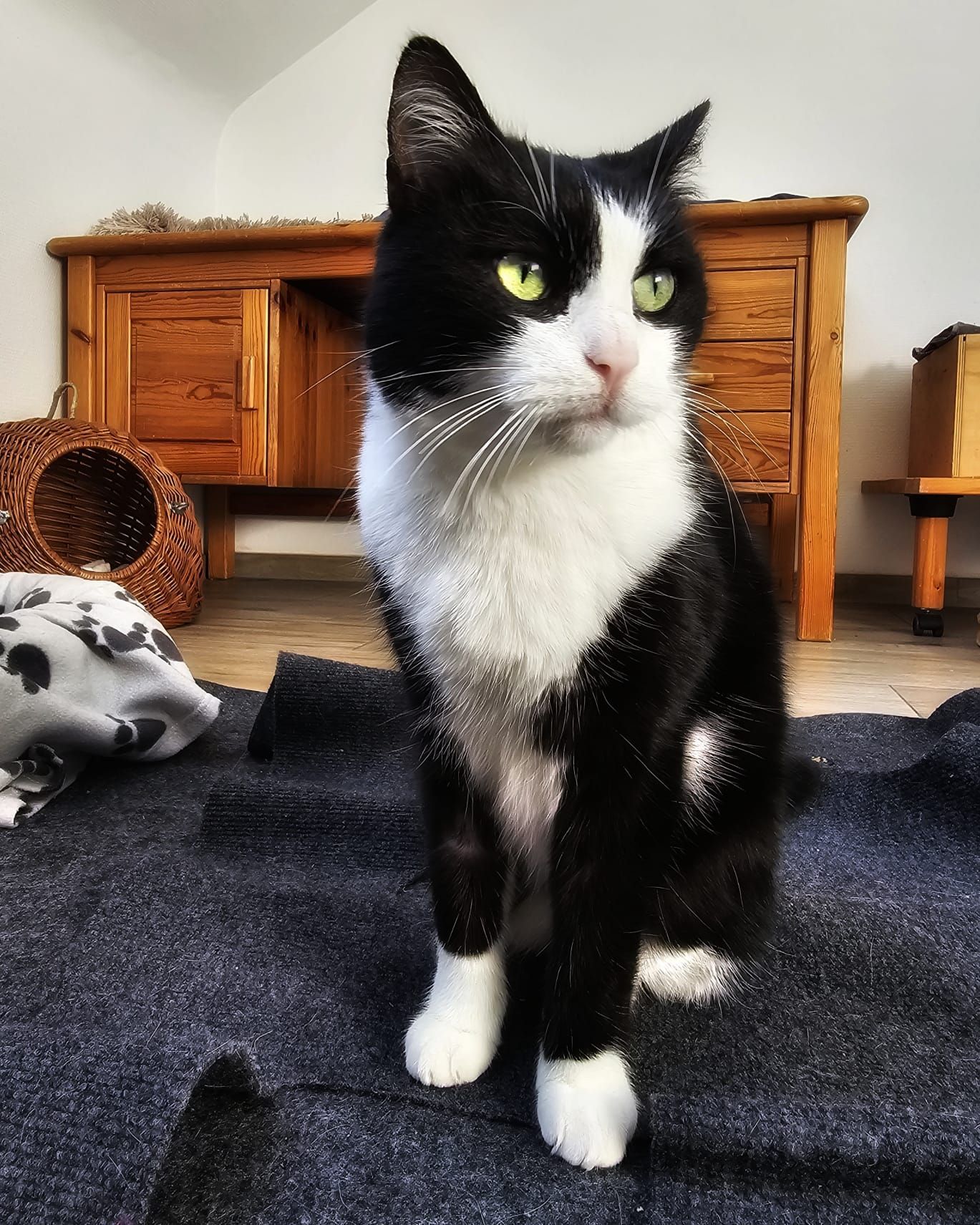 Kiko kennt andere Katzen, es sollte kein Problem sein, wenn schon ein Artgenosse da sein sollte.